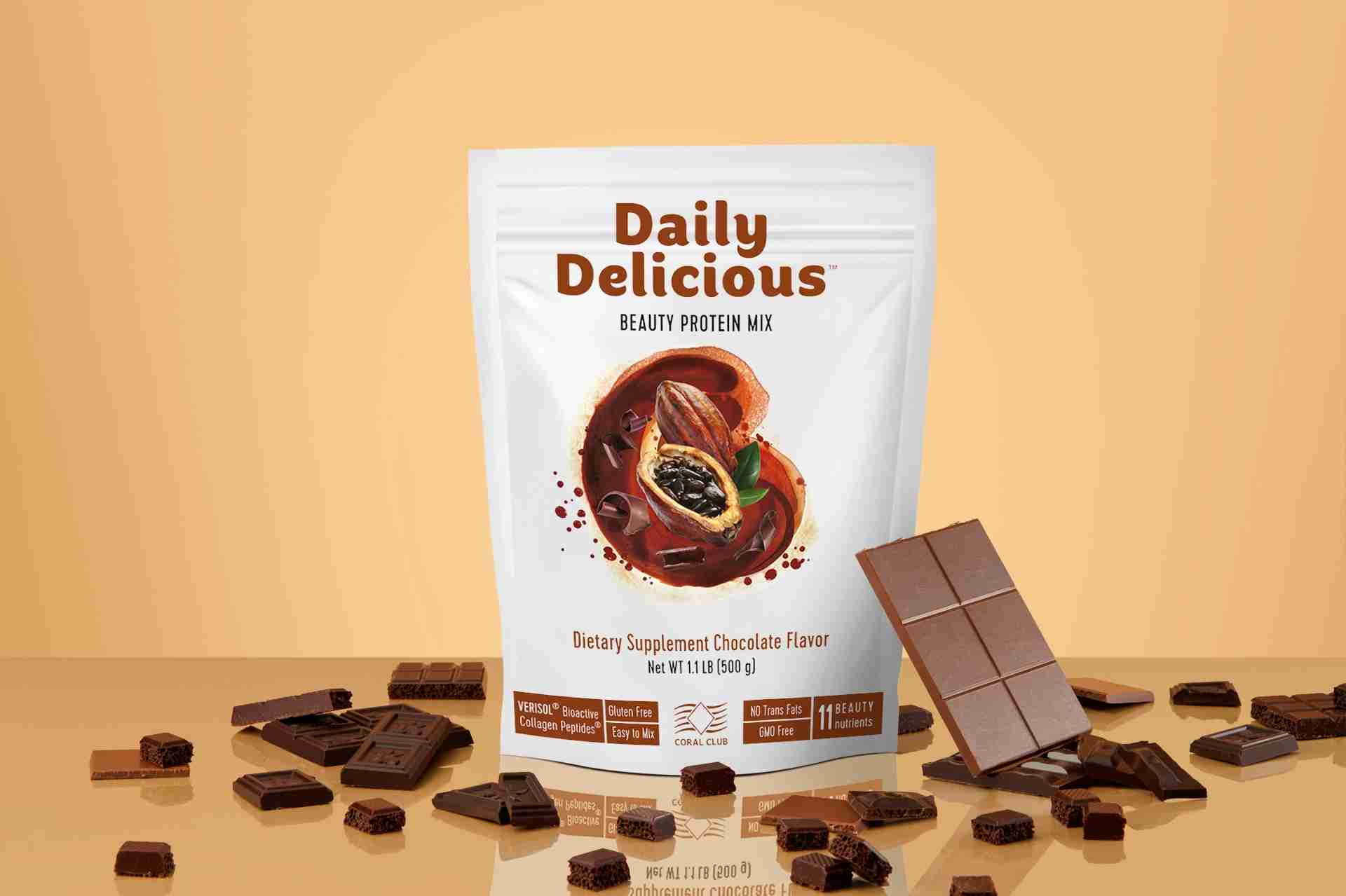Daily Delicious Beauty Protein Mix Chocolate, 500 g / 20 servings